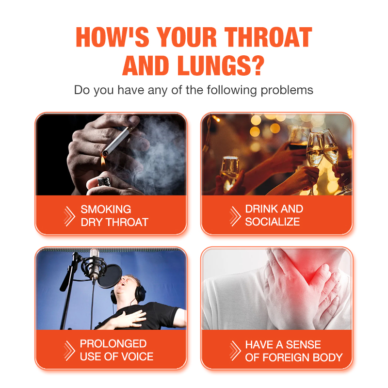 Relieve throat discomfort: Mint and herbal ingredients work together to bring a cool feeling and quickly relieve the problems of dry throat, itching, swelling and pain caused by various reasons.